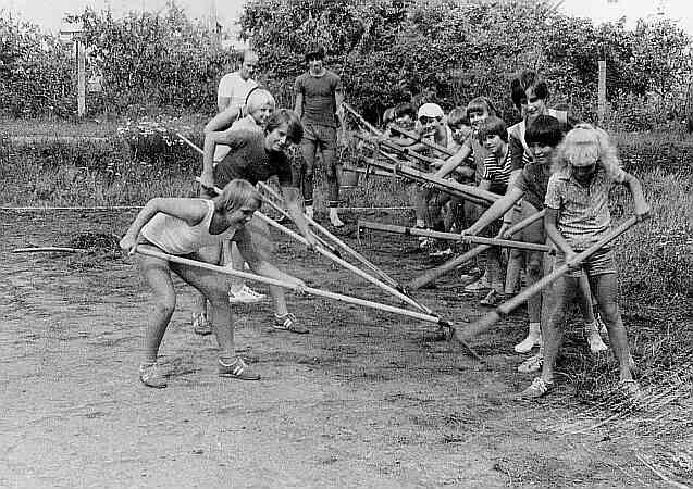 Soustředění Buchlovice 1978 - stavba hřitě |